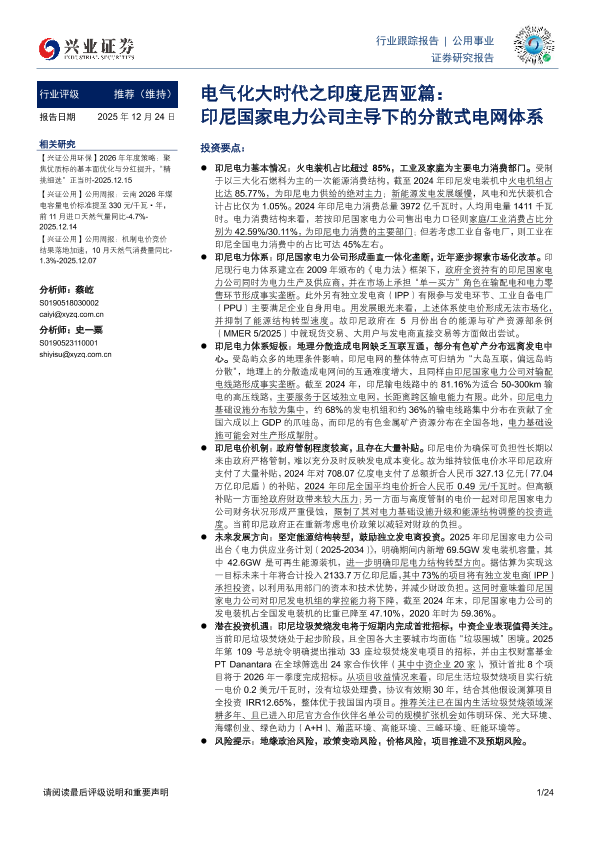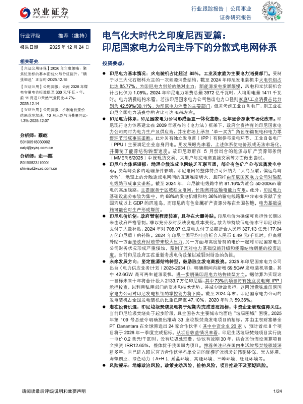 【兴业证券】【202512】电气化大时代之印度尼西亚篇:印尼国家电力公司主导下的分散式电网体系-24页
