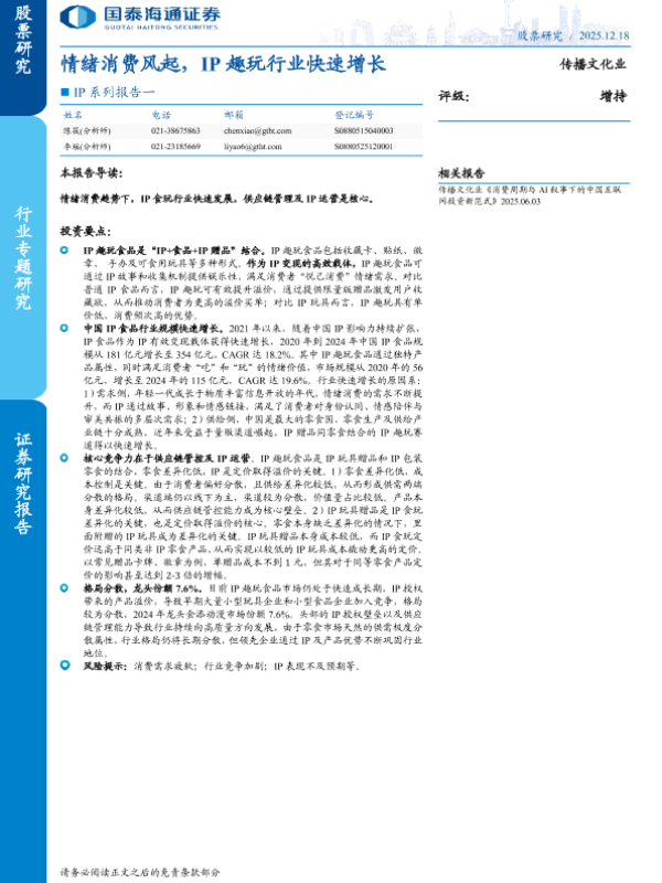 【国泰海通证券】【2025】情绪消费风起,IP趣玩行业快速增长-22页