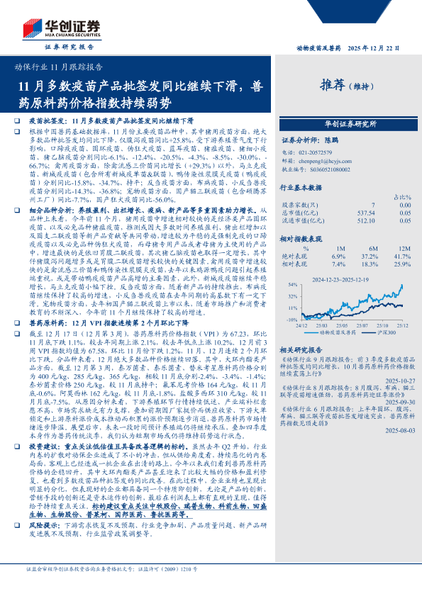 疫苗批签发 兽药原料药 动保行业 养殖景气度 投资建议