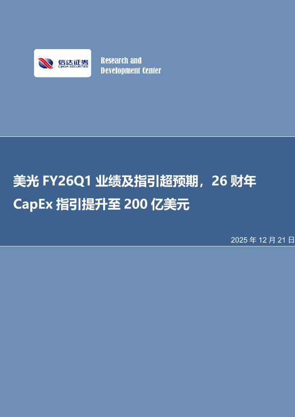 【信达证券股份有限公司 C INDA SECUR IT IES CO.<D】【202512】美光 FY26Q1业绩及指引超预期,26财 年 CapEx指引提升至 200亿美元-13页
