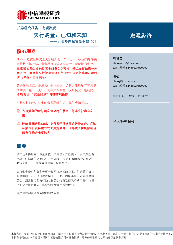 宏观策略 黄金储备 货币政策 央行购金 大类资产配置