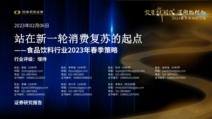 【国泰君安证券】【20230206】食品饮料行业2023年春季策略:站在新一轮消费复苏的起点-48页