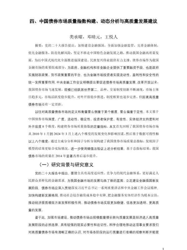 【类承曜,邓晴元,王悦人】【2024】中国债券市场质量指数构建、动态分析与高质量发展建议-45页