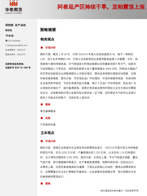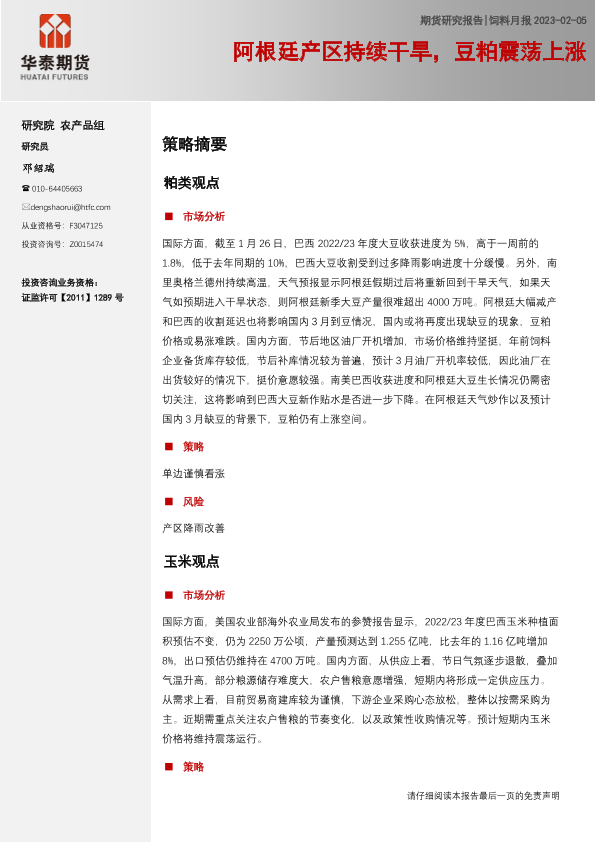 【华泰期货】【20230205】饲料月报:阿根廷产区持续干旱,豆粕震荡上涨-20页
