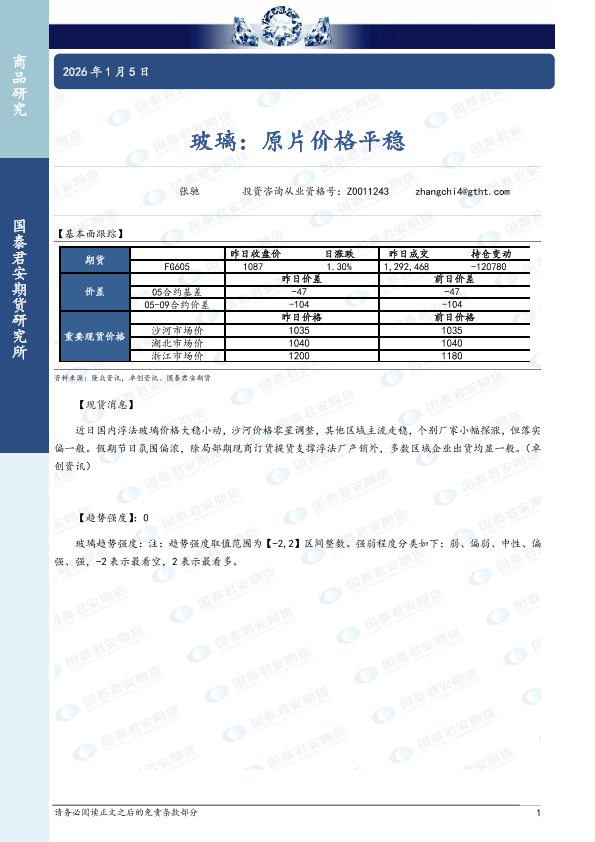 【国泰君安期货】【202601】玻璃:原片价格平稳-2页