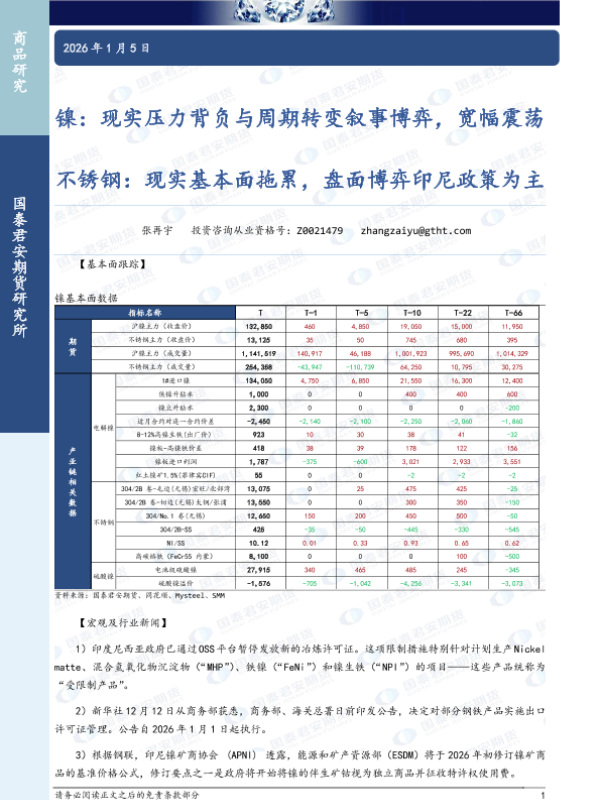 【国泰君安期货】【202601】镍:现实压力背负与周期转变叙事博弈,宽幅震荡;不锈钢:现实基本面拖累,盘面博弈印尼政策为主-3页