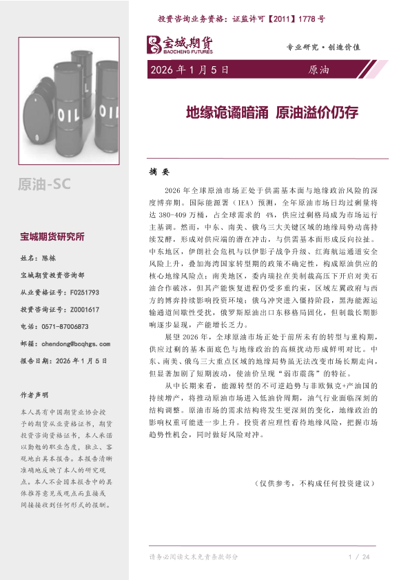 【宝城期货研究所】【202601】地缘诡谲暗涌原油溢价仍存-14页