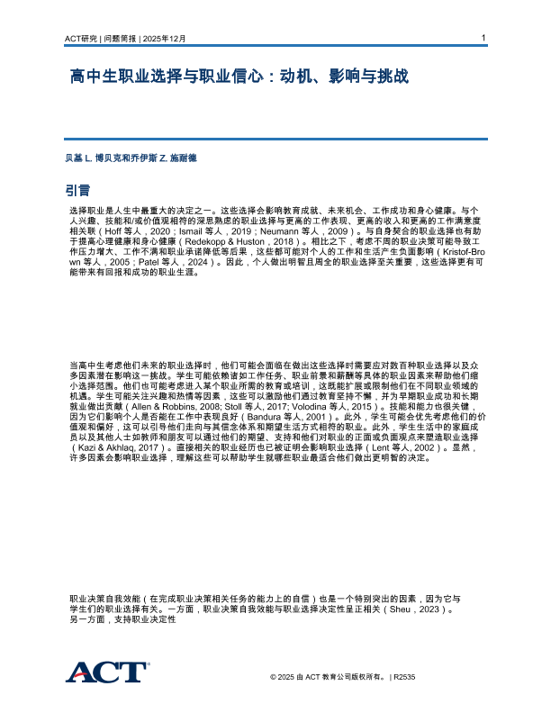 【ACT】【2024】高中生职业选择与职业信心 动机、影响与挑战-37页