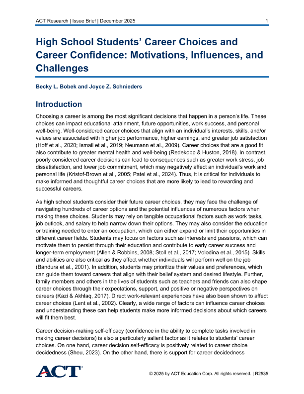 【ACT】【2024】High School Students’ Career Choices and Career Confidence Motivations, Influences, and Challenges-37页