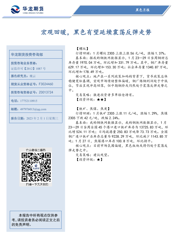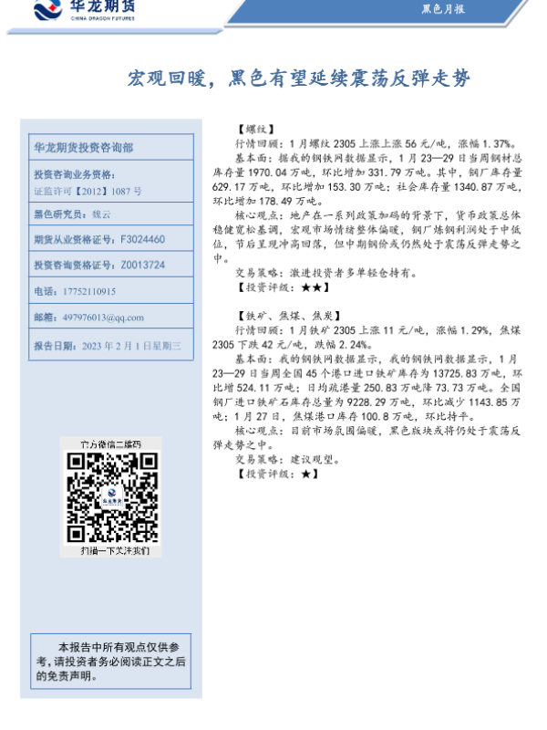 【华龙期货】【20230201】黑色月报:宏观回暖,黑色有望延续震荡反弹走势-16页