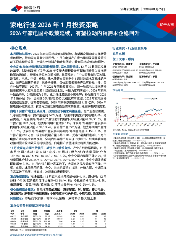 【国信证券】【202601】优于大市 家电行业 2026年 1月投资策略-13页