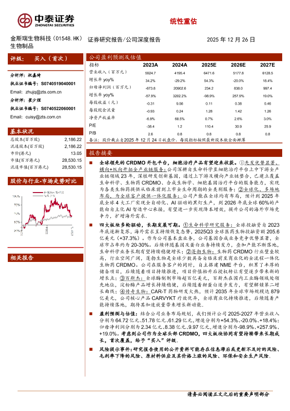 【中泰证券】【202512】全球领先的一站式CRDMO,细胞治疗产品逐步收获,有望迎来系统性重估-33页