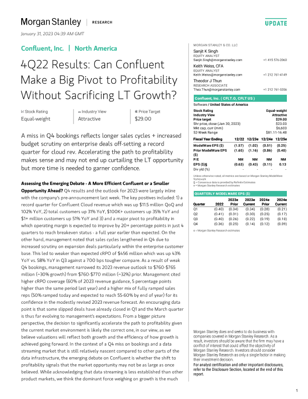 【Morgan Stanley】【20230131】Confluent, Inc. 4Q22 Results Can Confluent Make a Big Pivot to Profitability-13页