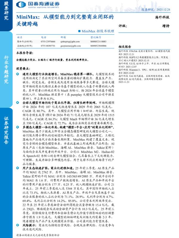 【国泰海通证券】【202512】MiniMax:从模型能力到完整商业闭环的关键跨越-21页