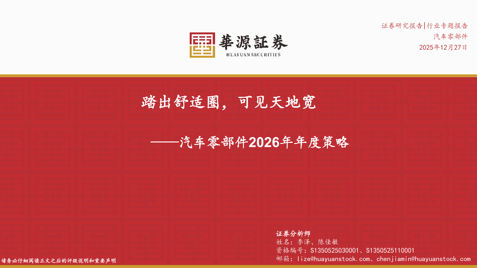 【华源证券】【202512】踏出舒适圈,可见天地宽——汽车零部件2026年年度策略-41页
