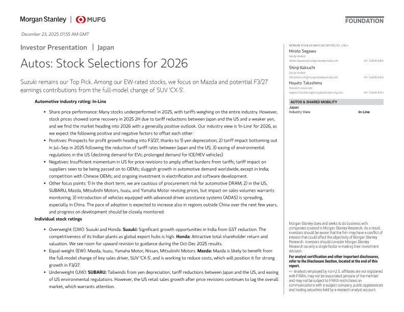【Morgan Stanley】【202512】Autos Stock Selections for 2026-51页