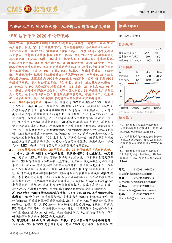 【海通证券】【202512】消费电子行业2026年投资策略:存储逆风不改AI端侧大势,把握新品创新及优质供应链-71页