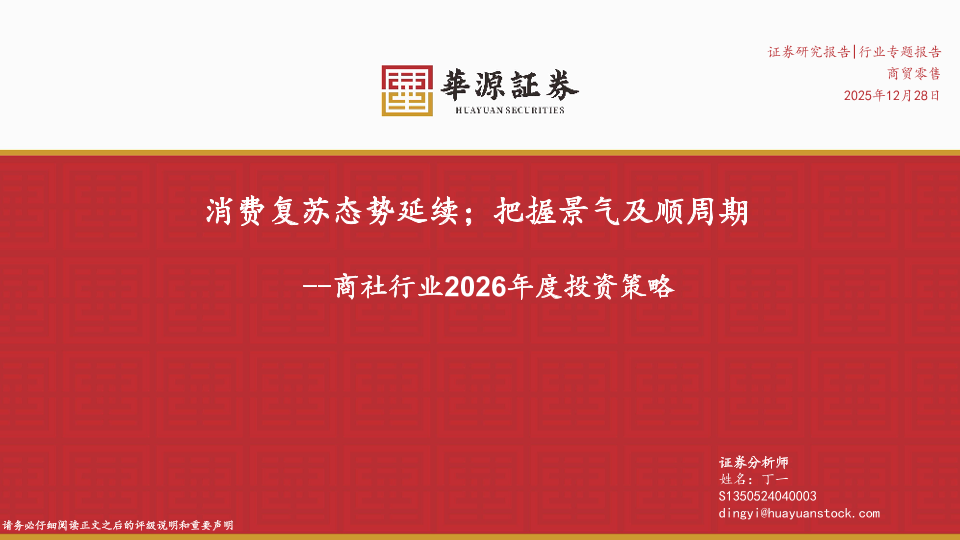 【华源证券】【202512】商社行业2026年度投资策略:消费复苏态势延续;把握景气及顺周期-28页