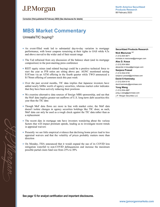 【J.P. Morgan】【20230206】JPMorgan Econ FI-MBS Market Commentary UnrealisTIC buying-16页