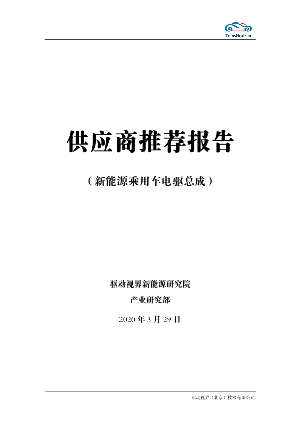 【驱动视界新能源研究院产业研究部】【2020329】供应商推荐报告(新能源乘用车电驱总成)-44页