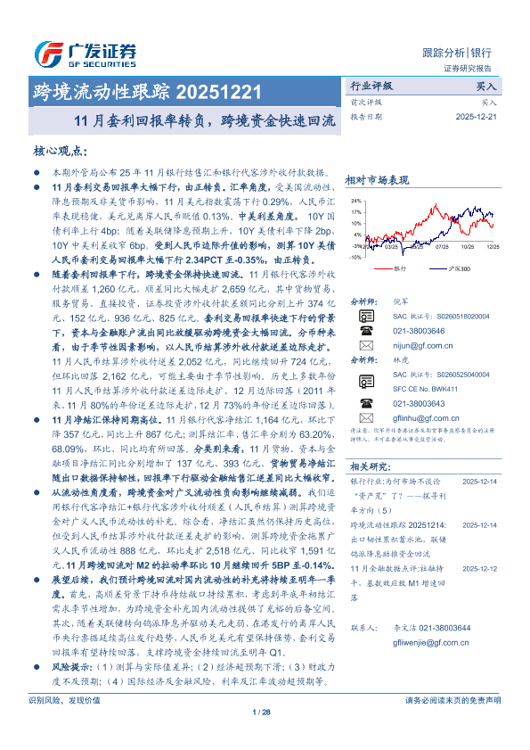 【广发证券】【202512】银行业跨境流动性跟踪:11月套利回报率转负,跨境资金快速回流-28页