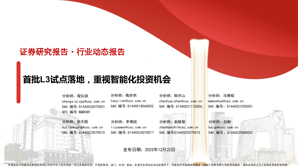 【中信建投证券】【202412】汽车行业:首批L3试点落地,重视智能化投资机会-30页