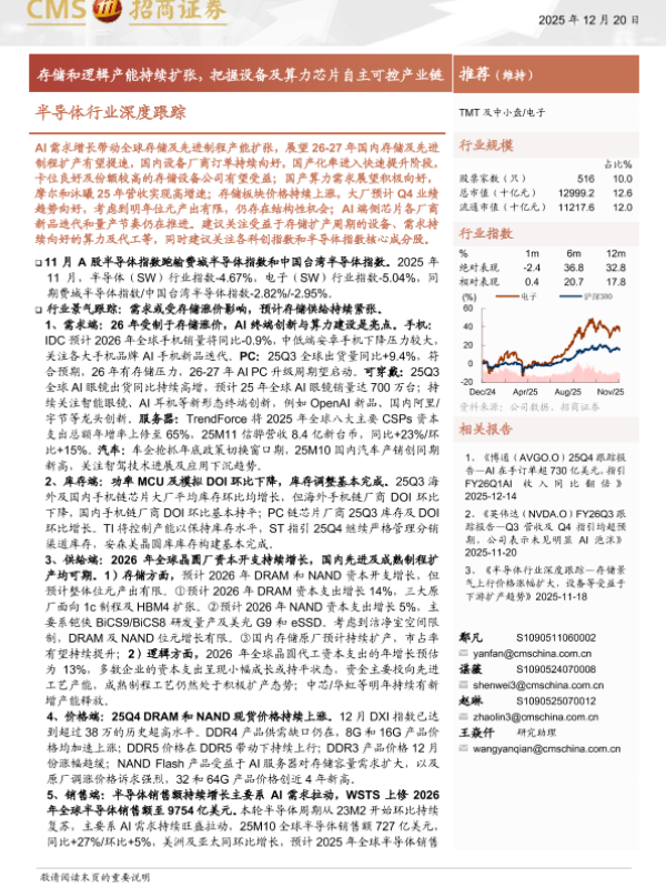 【海通证券】【202512】半导体行业深度跟踪:存储和逻辑产能持续扩张,把握设备及算力芯片自主可控产业链-68页
