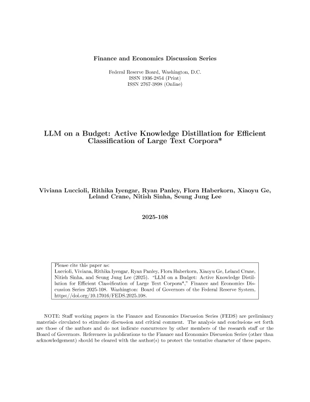 【Board of Governors of the Federal Reserve System】【2025】LLM on a Budget Active Knowledge Distillation for Efficient Classification of Large Text Corpora*-26页