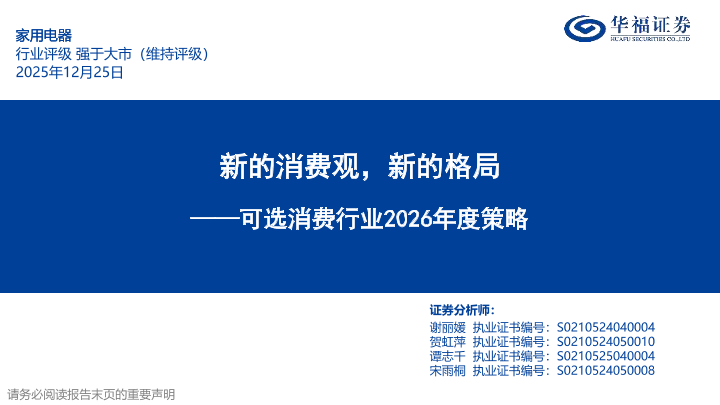 【华福证券】【202512】新的消费观,新的格局——可选消费行业2026年度策略-57页