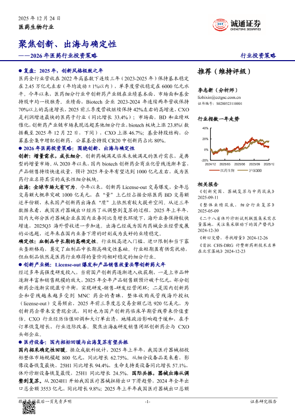 【诚通证券】【202512】2026年医药行业投资策略:聚焦创新、出海与确定性-41页