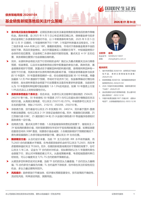 国债期货 债券策略 信用债 基金销售新规 利率债