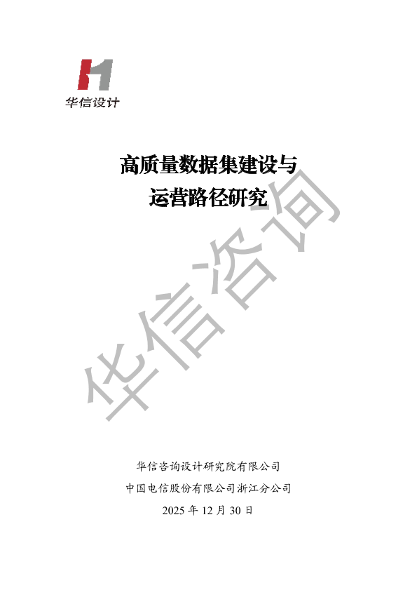 【华信咨询设计研究院有限公司&中国电信股份有限公司浙江分公司】【202512】高质量数据集建设与运营路径研究-66页