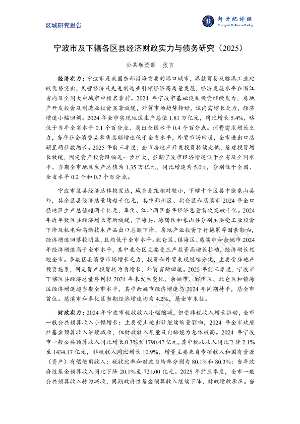 【公共融资部 张吉】【2025】宁波市及下辖各区县经济财政实力与债务研究(2025)-23页