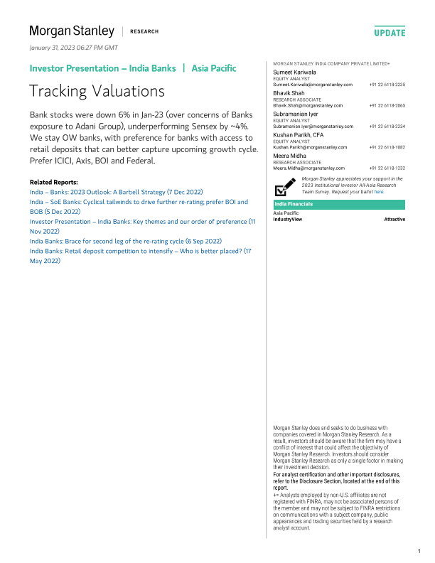 【Morgan Stanley】【20230131】Morgan Stanley Investor Presentation – India Banks Tracking Valuations-45页