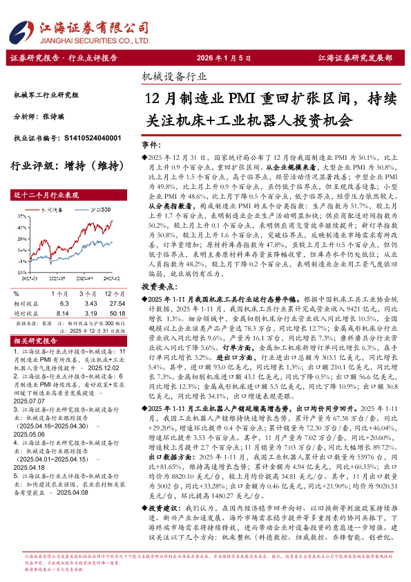 【江海证券】【2025】机械设备行业_12月制造业PMI重回扩张区间_持续关注机床+工业机器人投资机会-4页
