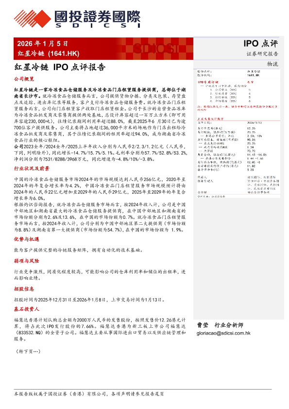 【国投证券(香港)有限公司】【202601】红星冷链IPO点评报告-3页