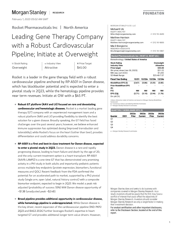 【Morgan Stanley】【20230130】Rocket Pharmaceuticals Inc - Leading Gene Therapy Company with a Robust Cardiovascular Pipeline-45页