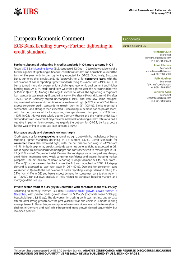 【UBS AG London Branch】【20230131】European Economic Comment _ECB Bank Lending Survey Further-11页