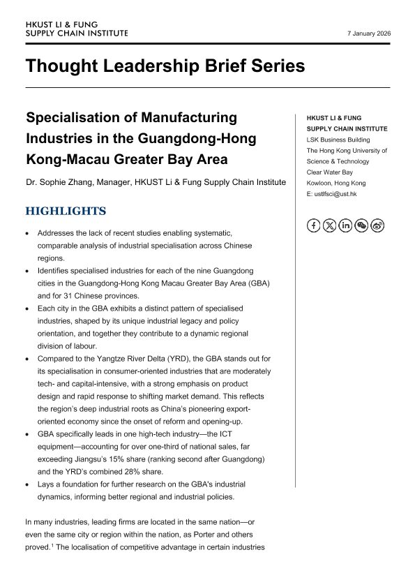 【HKUST Li&Fung Supply Chain Institute】【2023】Specialisation of Manufacturing Industries in the Guangdong-Hong Kong-Macau Greater Bay Area-10页