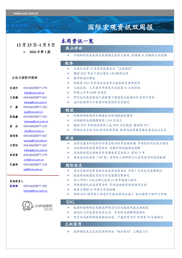 【中诚信国际】【202601】国际宏观资讯双周报2026年第1期-15页