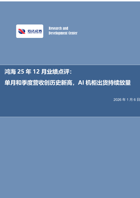 【信达证券】【202601】鸿海25年12月业绩点评:单月和季度营收创历史新高,AI机柜出货持续放量-6页