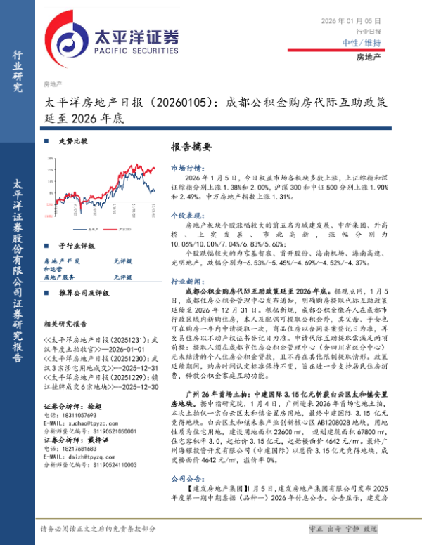 【太平洋证券】【202601】太平洋房地产日报(20260105):成都公积金购房代际互助政策延至 2026年底-4页