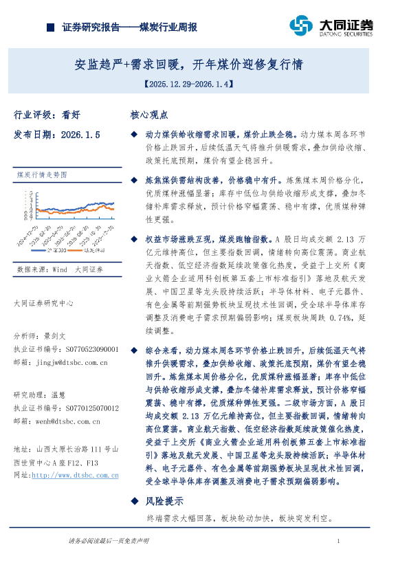 【大同证券研究中心】【202601】安监趋严+需求回暖,开年煤价迎修复行情-14页