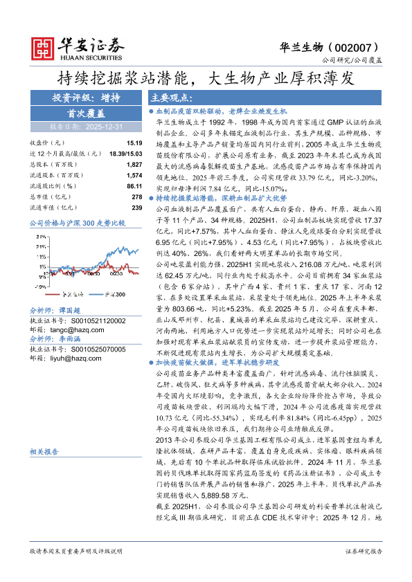 投资评级 血制品 疫苗 单抗 浆站