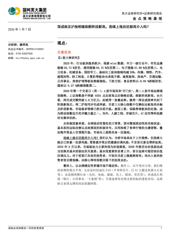 【英大证券】【202601】深成指及沪指相继刷新阶段新高,连续上涨后还能再介入吗?-4页