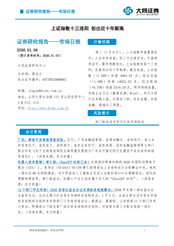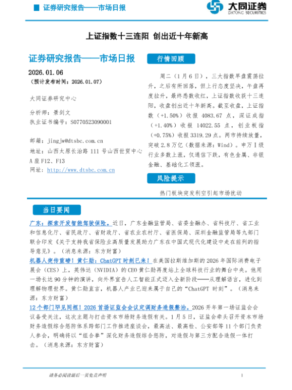 【大同证券研究中心】【202601】市场日报:上证指数十三连阳 创出近十年新高-5页