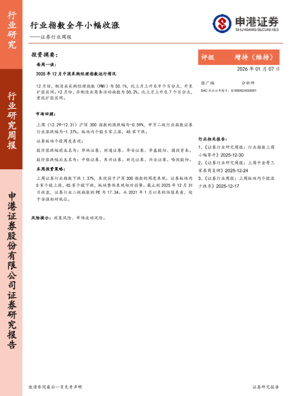 【申港证券】【202601】行业指数全年小幅收涨——证券行业周报-7页