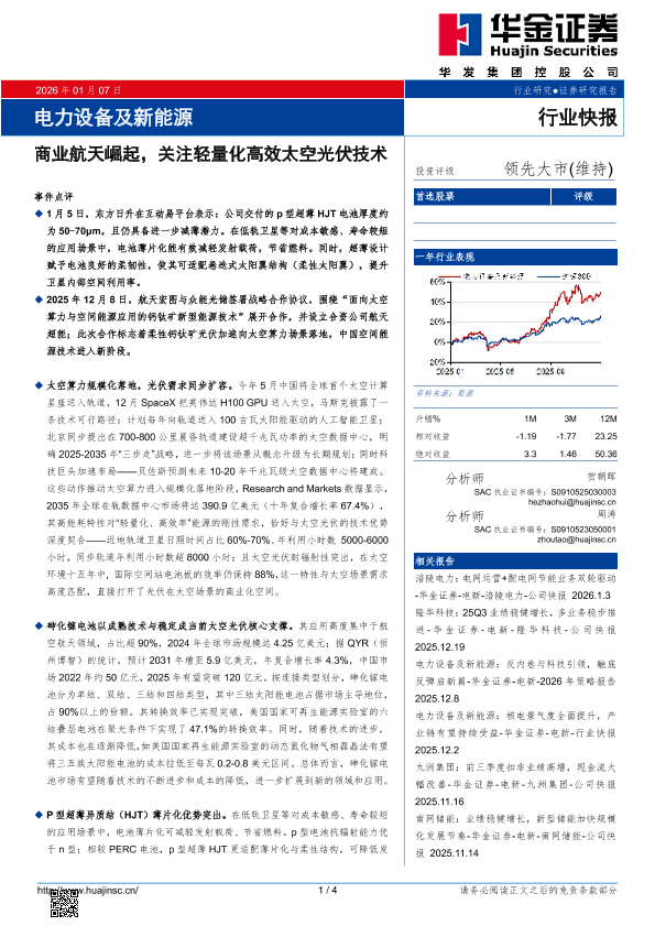 【华金证券】【202501】电力设备及新能源:商业航天崛起,关注轻量化高效太空光伏技术-4页