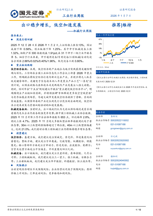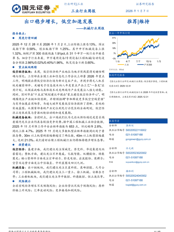 【国元证券】【202512】稳步增长,低空加速发展——机械行业周报-12页