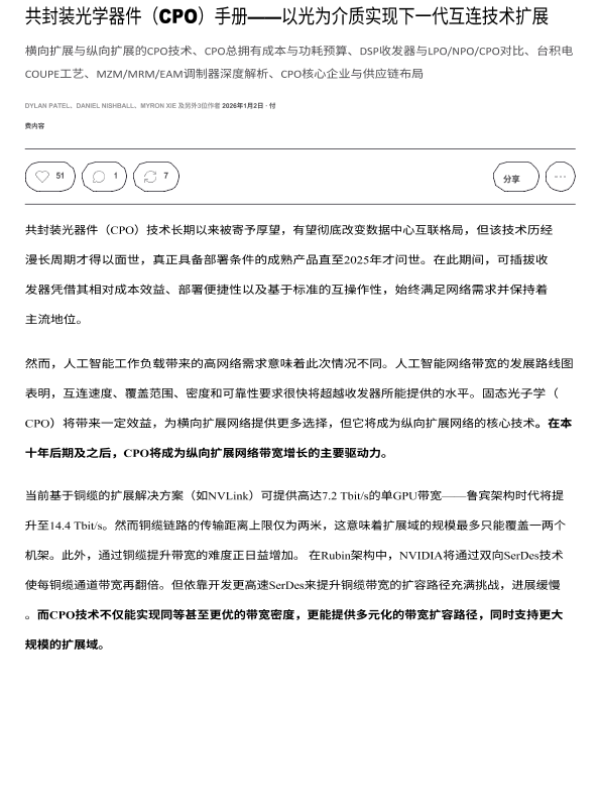 【SemiAnalysis】【202601】共封装光学器件(CPO))手册——以光为介质实现下一代互连技术扩展-115页